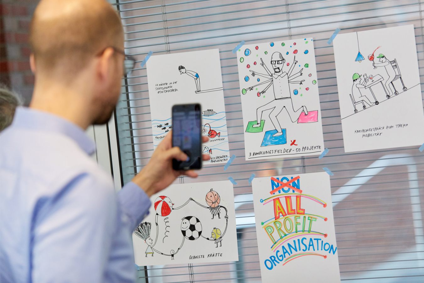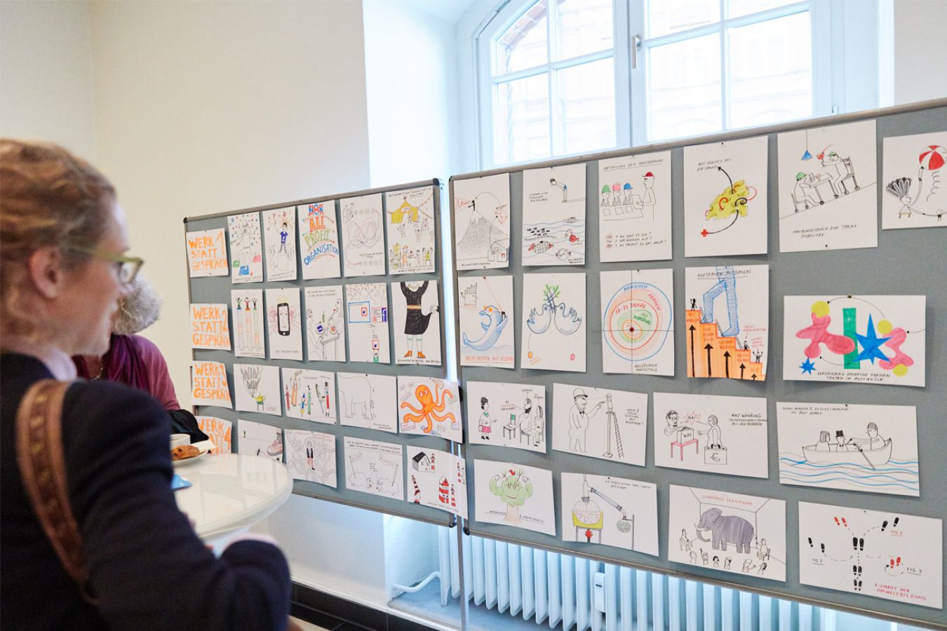 Die Zeichnungen kommentierten die fachlichen Inputs, sowie die Publikumsreaktionen.