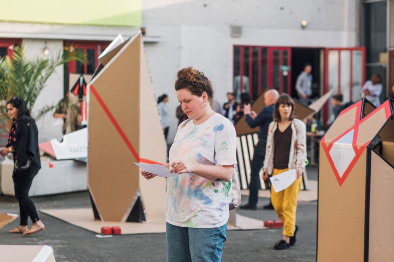 Touristen in der PopUp-Stadt mit der Krassolonia Map -