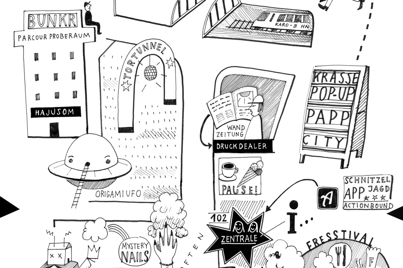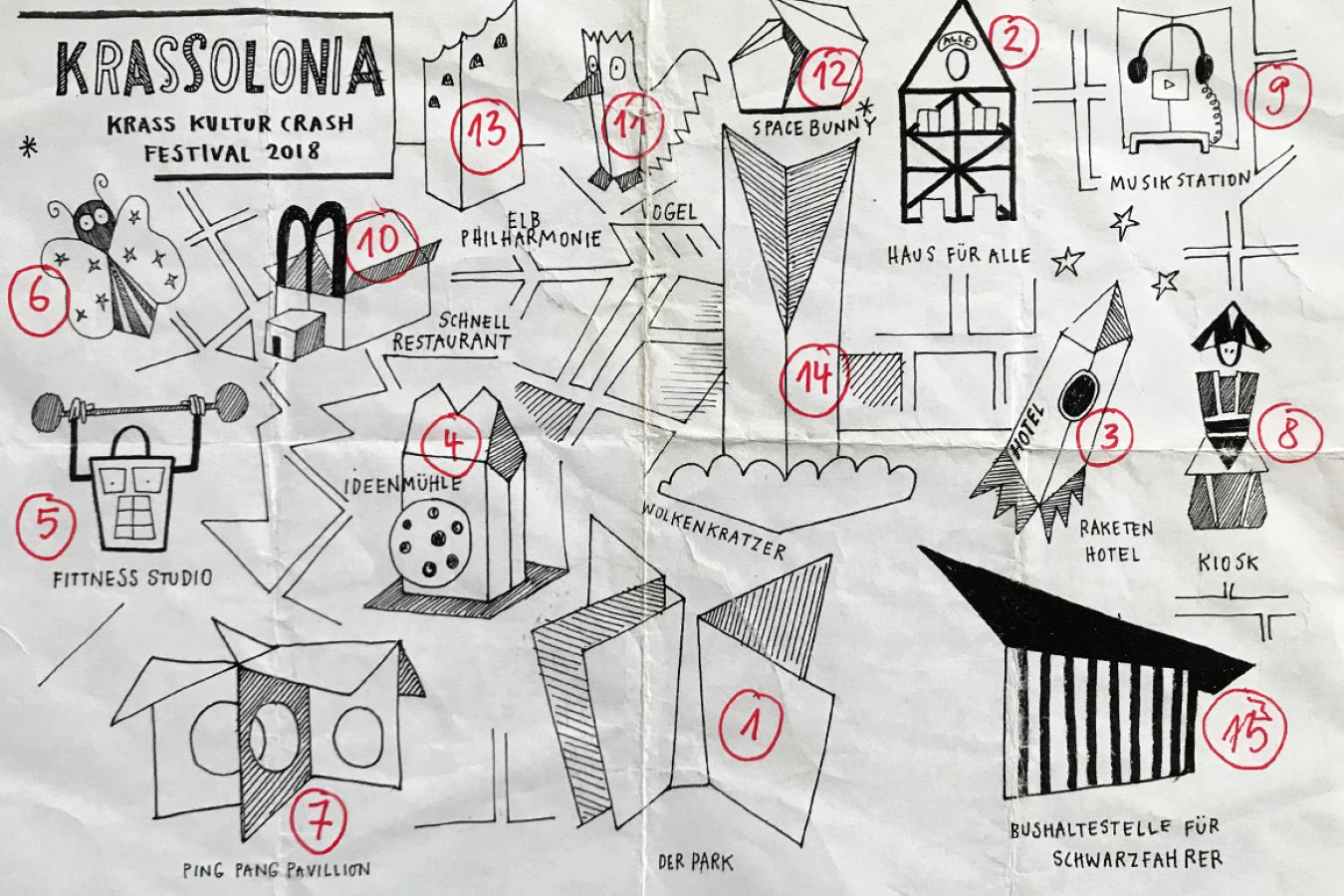 Lageplan für Krassolonia - eine PopUp-Stadt für das Krass Kultur Crash Festival auf Kampnagel