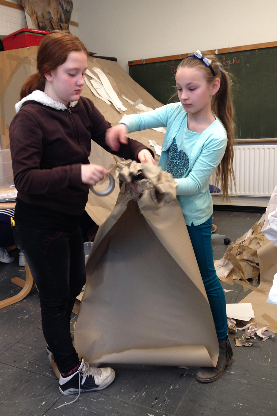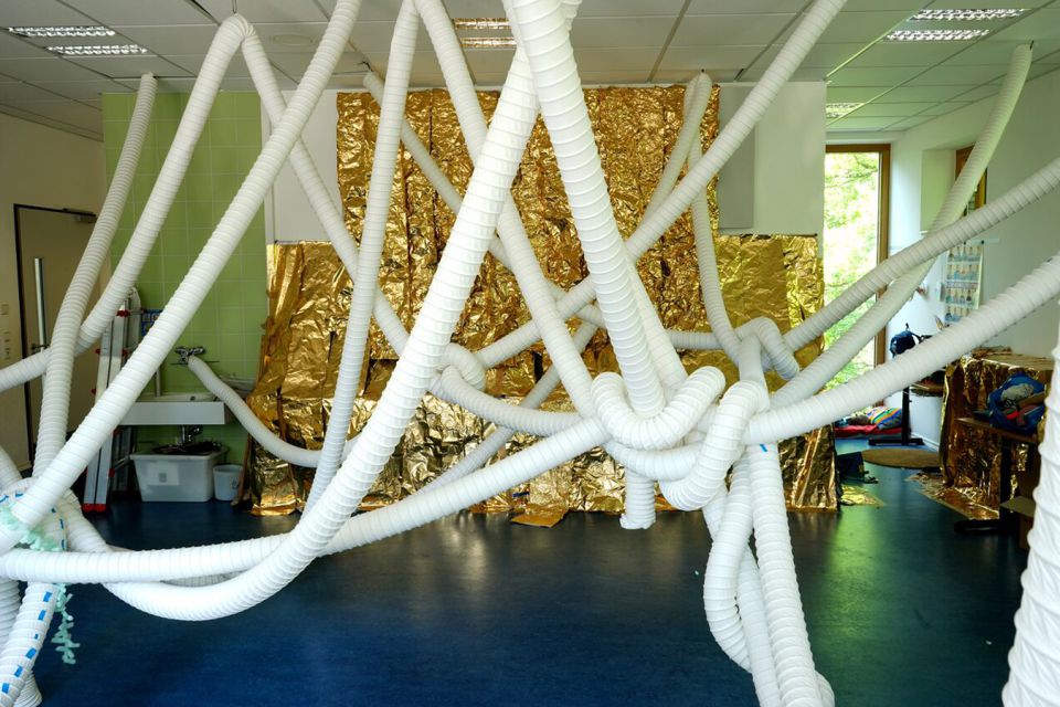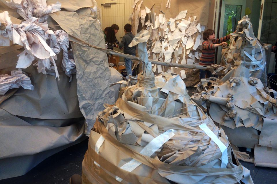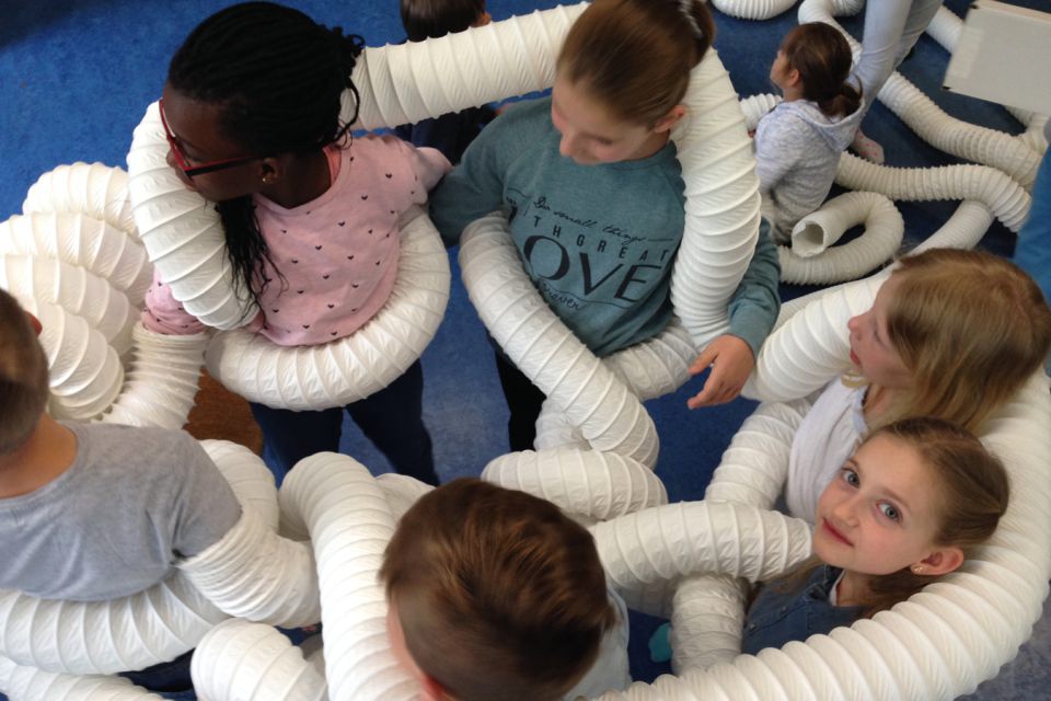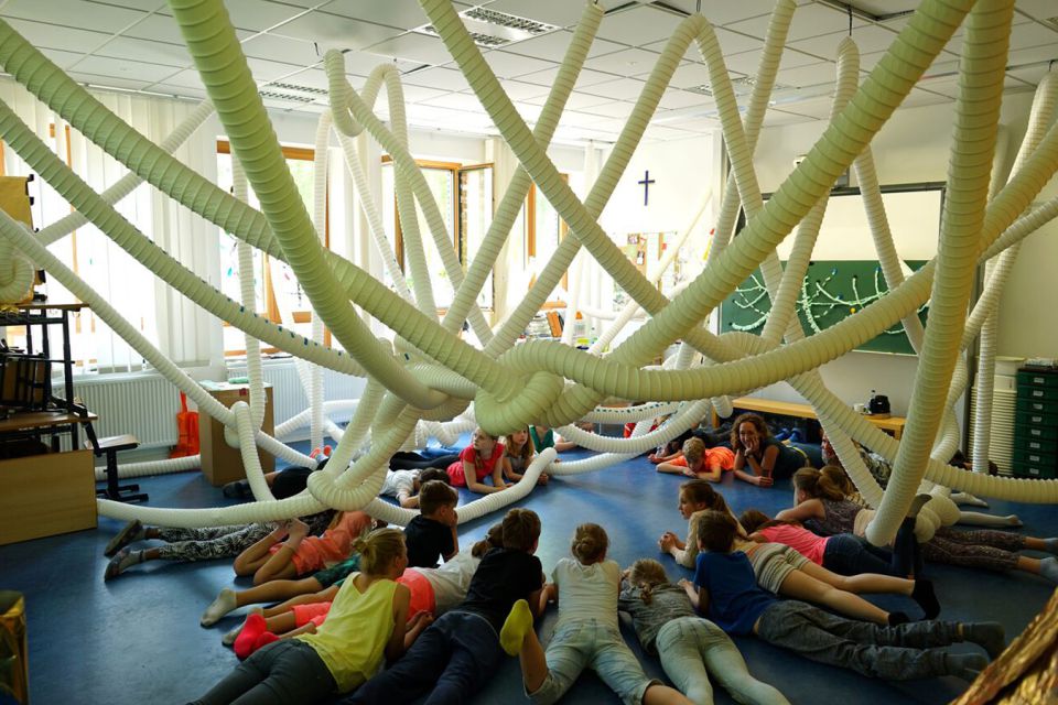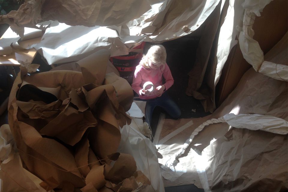Am Ende beschlossen die Kinder, was sie in ihren neuen Räumen anstellen wollten: Geschichten in einer Papphöhle flüstern oder Stopptanz unter Schläuchen spielen.