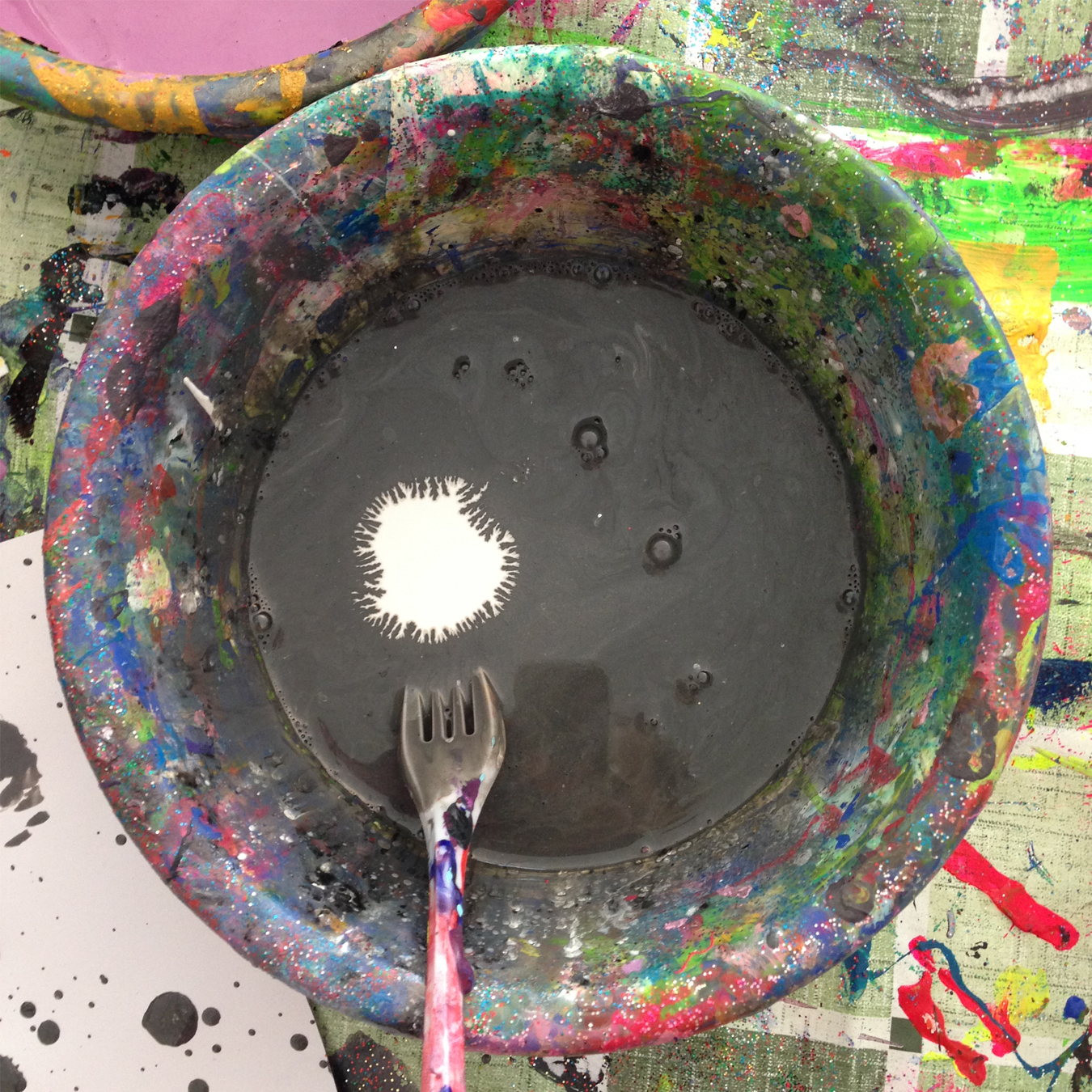 F. hat nie gemalt, aber immer die Krusten der Farbflaschen gesammelt und arrangiert. -