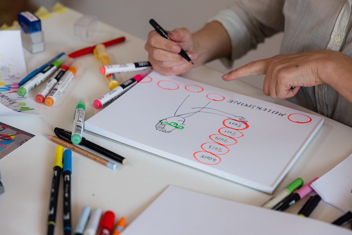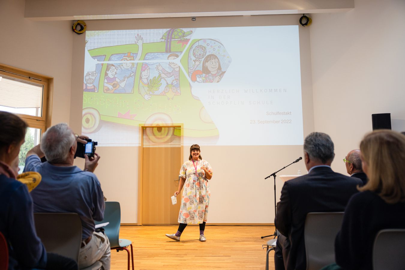 Lörrach 2022 - Festakt zur Einweihung des neuen Schulkomplexes der Schöpflin Schule. Zeichnerische Begleitung von Kindertanz, Musikbeiträgen und bewegende Reden.