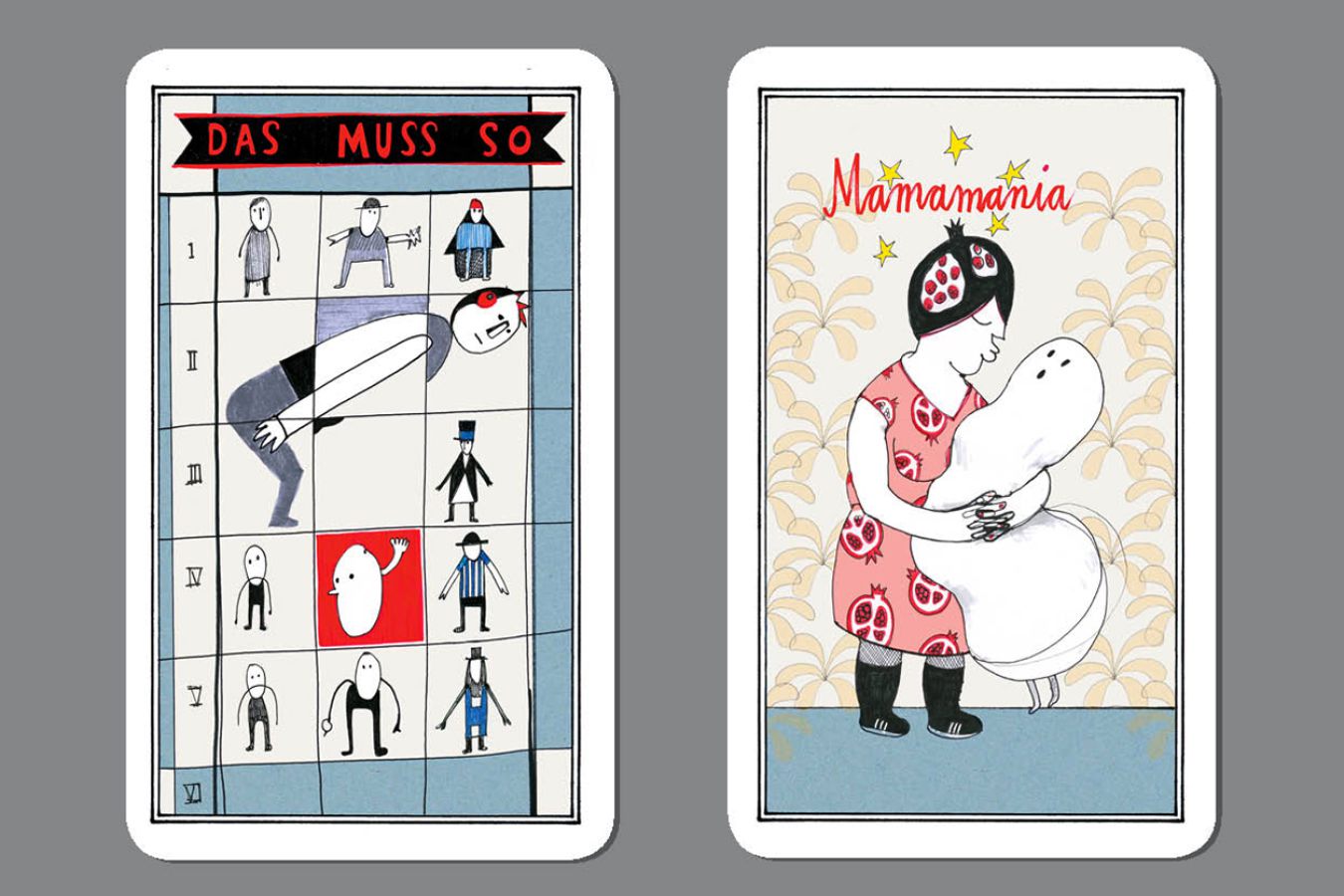Idee, Illustration & Text für ein Kartenspiel zur spielerischen Selbstreflexion. Set aus 26 Spielkarten, Begleitheft und einer Box.