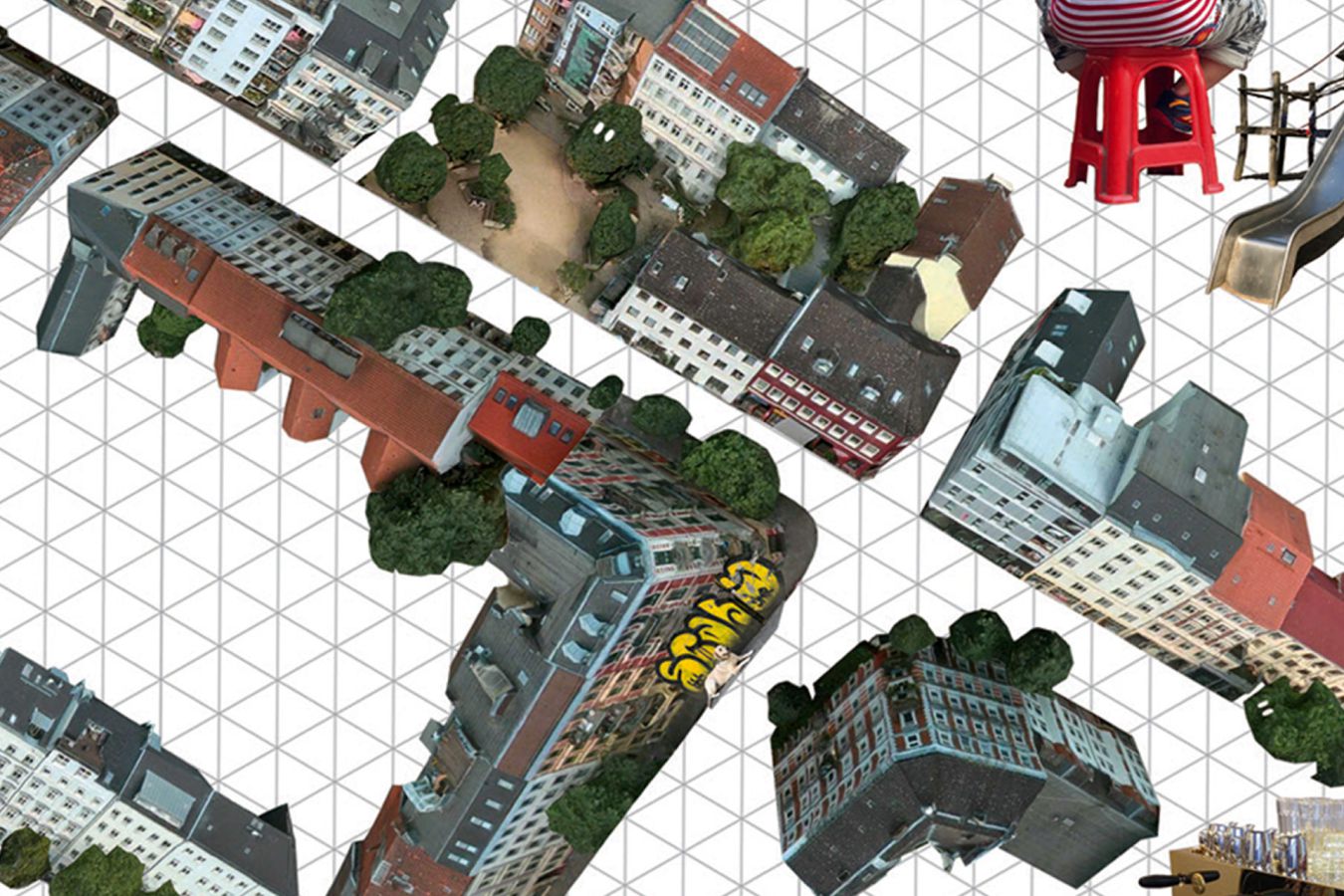 Sie befinden sich hier. Gezeichnete Landkarten für den Stadtraum, für eine digitale Festivallandschaft und für eine PoUp-Stadt auf Kampnagel. Kartenmaterial von 2018 bis 2021