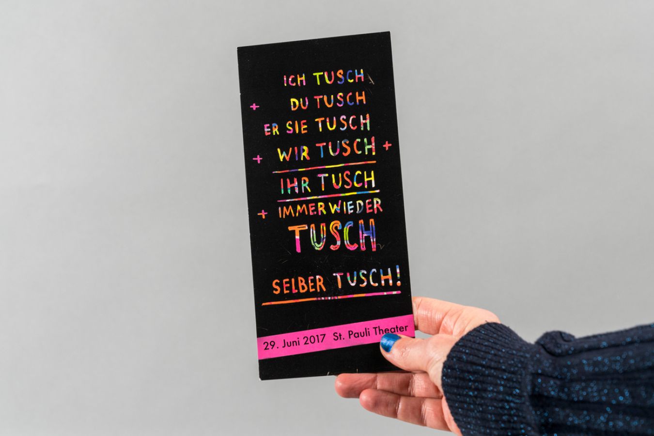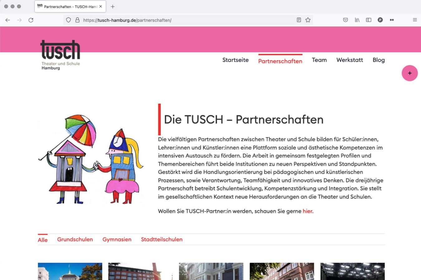 Seit 2017 zeichne ich für das Programm TUSCH - Theater und Schule Hamburg: für die Webseite, Postkarten und den Newsletter.