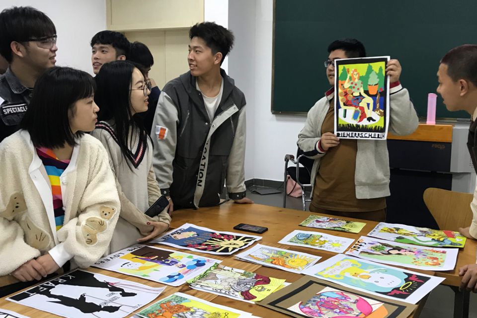 Sie bekamen die Aufgabe, die Symbolik auf der Karte zu entschlüsseln und zweifach zu übersetzen: 1. die Symbolik in die chinesische Kultur zu übertragen und 2. eine zeitgemäße visuelle Übersetzung zu finden.