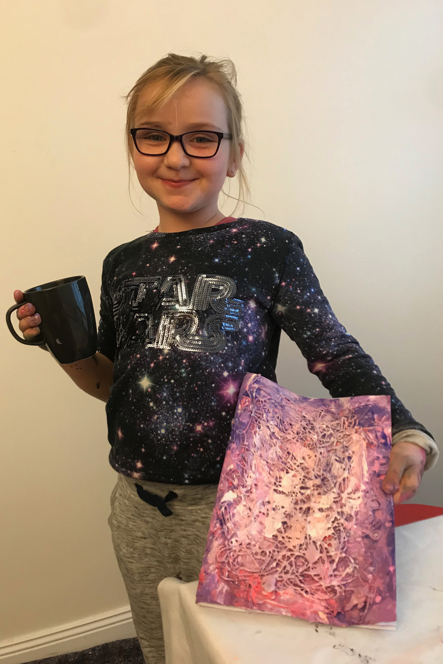 Mit einer Graphitschraffur legen die Kids die Dinge unter der Papierbahn frei: Frottage! -