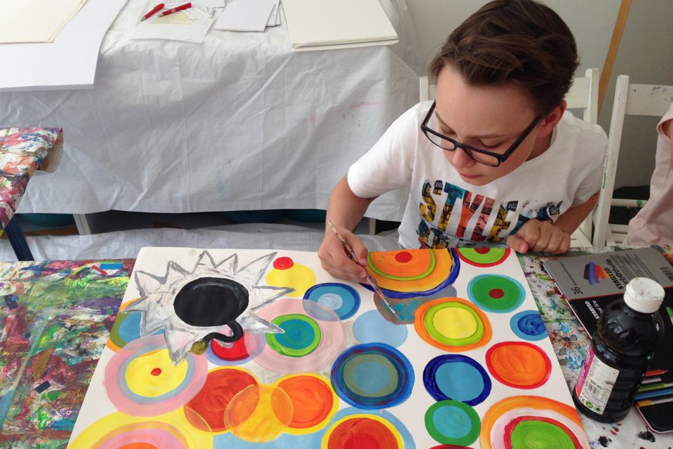 Im Atelier kommen Kinder zusammen, die selbst oder in ihrer Familie von einer Krebserkrankung betroffen sind.