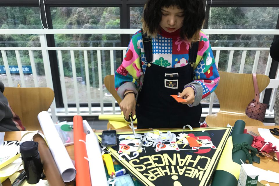 Viele junge, chinesische Designstudent:innen sind versierte Zeichner:innen. Zeichnen können sie schon richtig gut, also geht es jetzt um die Fläche. Mit Cut Outs läßt sich Flächengestaltung besonders gut lernen.