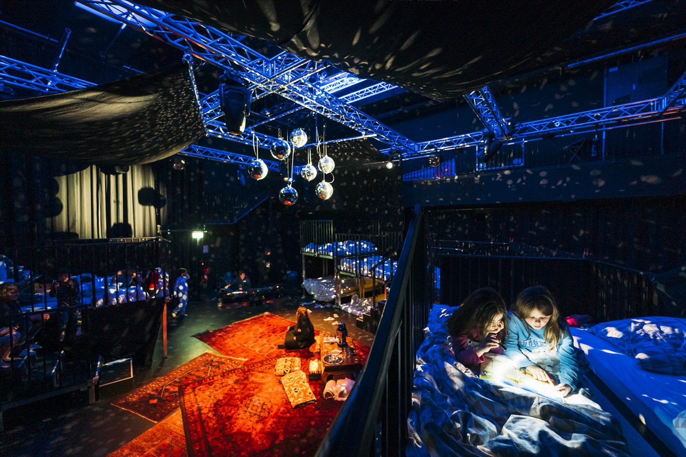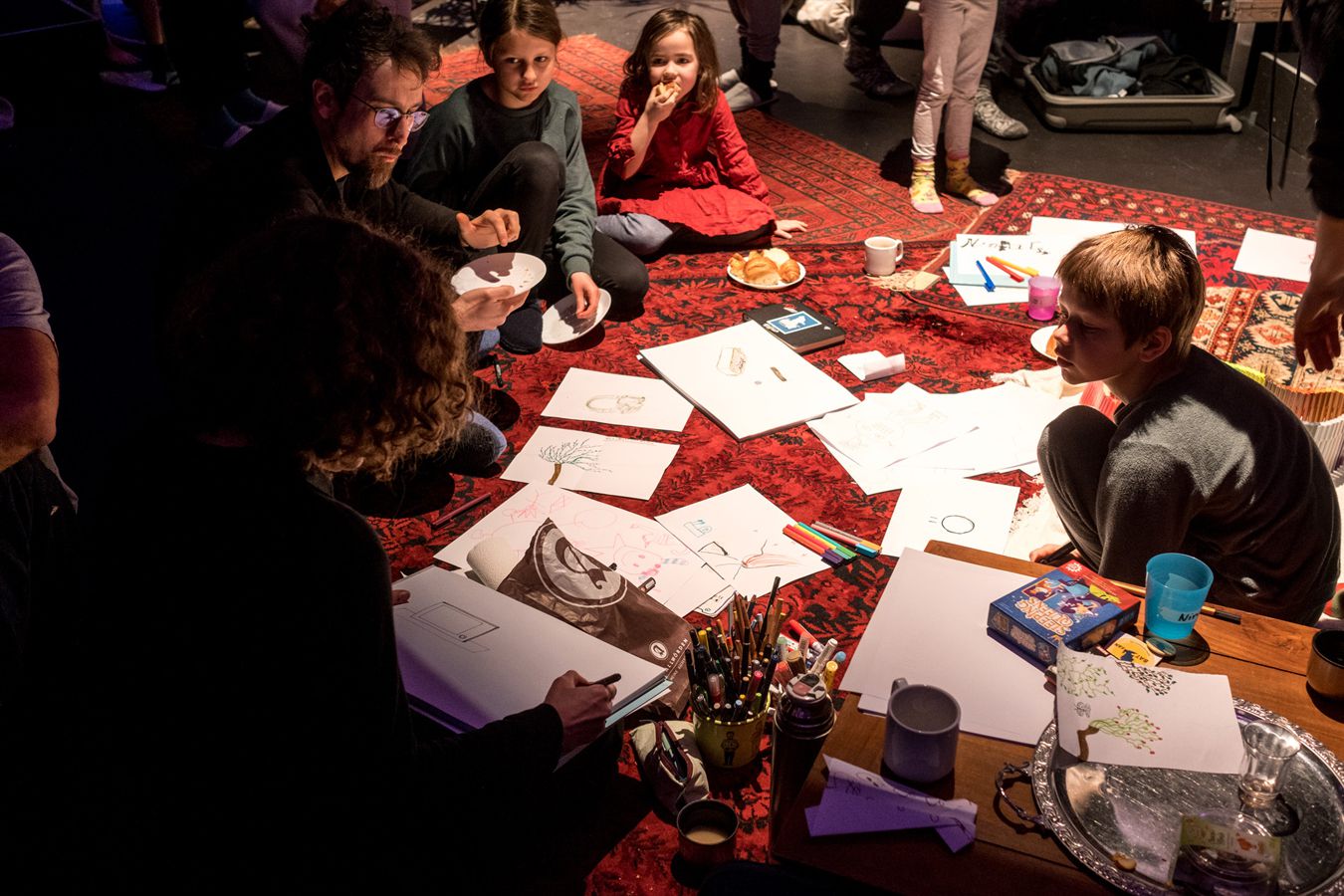 Der Theatersaal wird zum Schlafsaal. Im Fundustheater erforschen Kinder und Erwachsene den Schlaf. Noch sehr verschlafen kommen die Gäste früh am Morgen mit ihren Traumbildern zu mir, die ich zu Papier bringe. Kinder mit Alpträumen hatten die Erlaubnis, mich zur Traumbannung auch zu wecken.