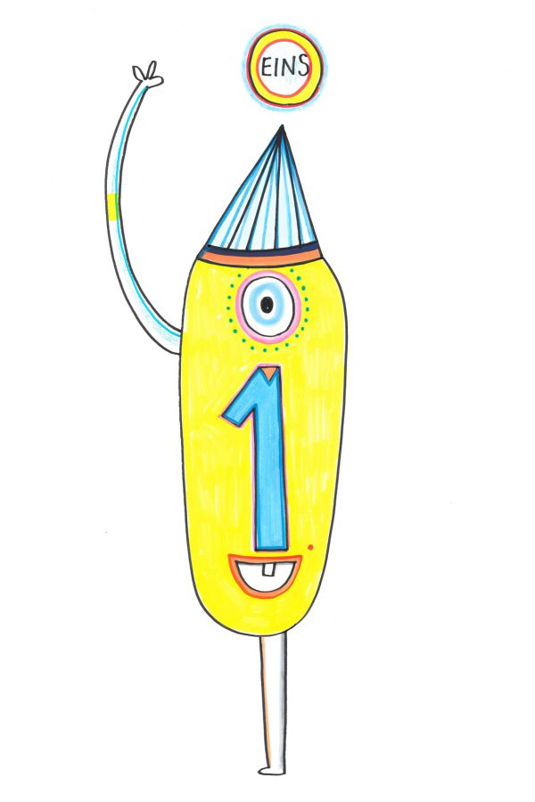 1 Arm, 2 Beine und 4 Augen - oder 3 Arme, 1 Bein und 2 Augen? Die Figuren verbildlichen das jahrgangsübergreifende Konzept der Schöpflin Schule. Hier lernen Kinder der Jahrgänge 1 bis 4 in altersgemischten Gruppen. Die Figuren schmücken je nach Jahrgang in unterschiedlichen Konstellationen die Zeugnisse, die in der Schöpflin Schule "Lernberichte" heißen.