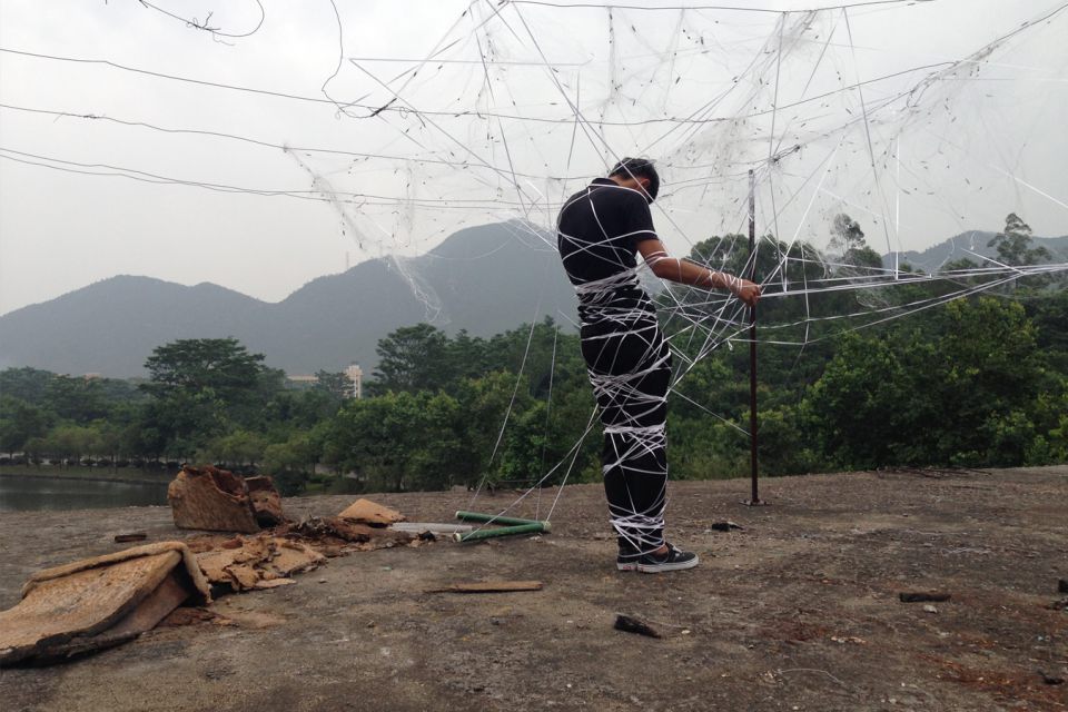 Interventionsübung auf dem Dach: verändere den Raum mit einem einzigen Material -